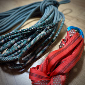登山やクライミングにおける安全確保の要となる、カラビナ、スリング、ロープに関する正しい知識を学ぶカリキュラムです。