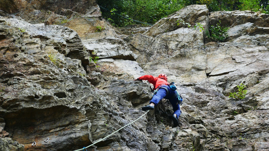 登山の岩場とは比にならない、本当の岩登りの世界の片鱗に触れることができるでしょう。(初心者向けの簡単な壁です。)